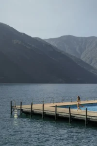 La majesté du lac et l’élégance des intérieurs s’allient dans une étreinte de couleurs.