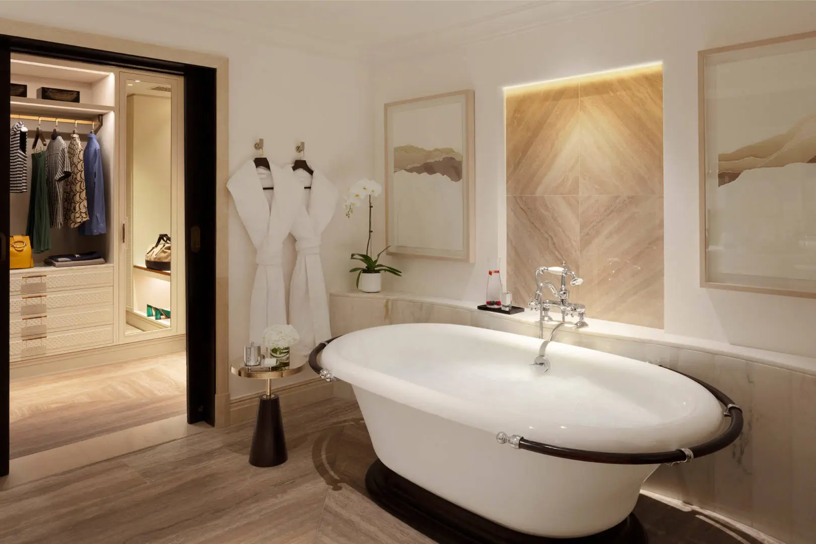 Un havre de sérénité de 129 m² avec terrasse privative donnant sur les jardins. Idéale pour se ressourcer dans un cadre naturel, avec salon, salle à manger et accès privilégié au Palace Lounge.